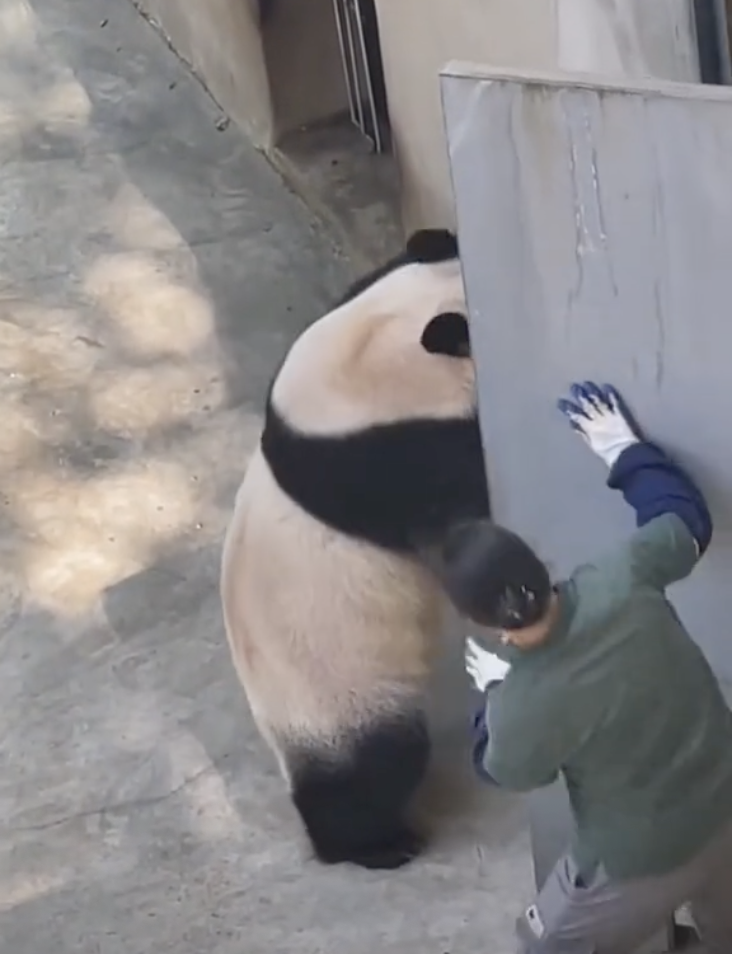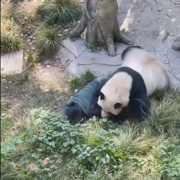 4月23日,网传一段视频显示,重庆动物园两只大熊猫将一名女性饲养员扑倒几十秒,直到另一名男性饲养员赶到帮忙才挣脱。据悉两只大熊猫正是“渝可”“渝爱”这对兄妹。