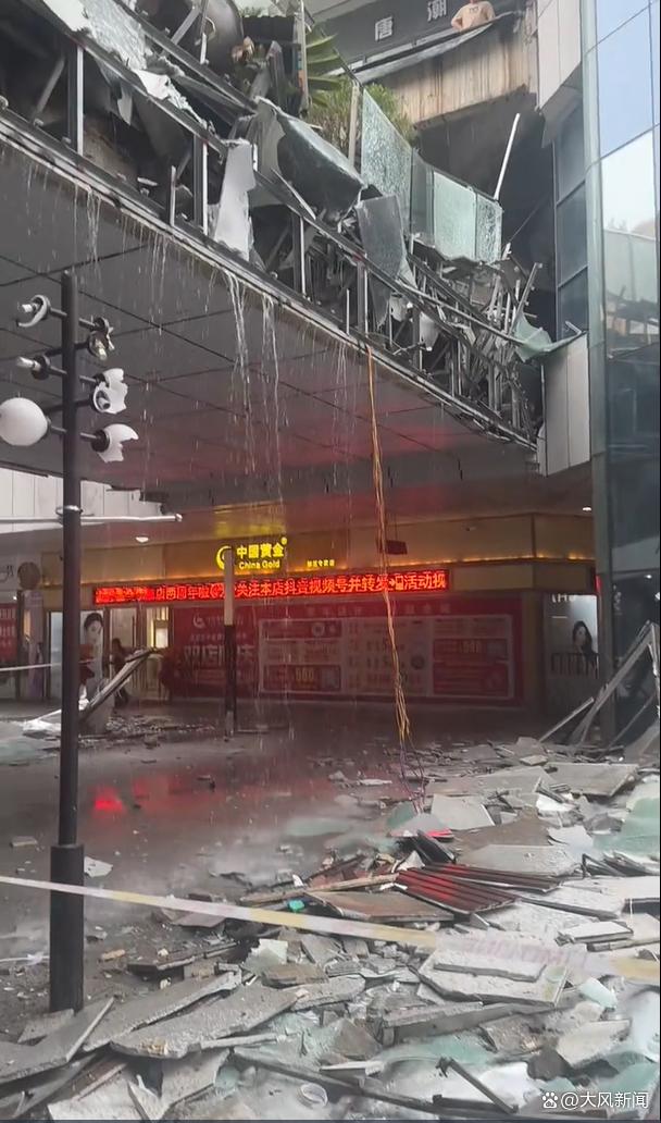 一位商户告诉华商报大风新闻记者,是富泰时代广场二楼一处过道连廊垮塌,“不是受台风的影响,应该没有台风呀。那边二楼也没有店铺装修,它塌了,那肯定现在走不成人了。”