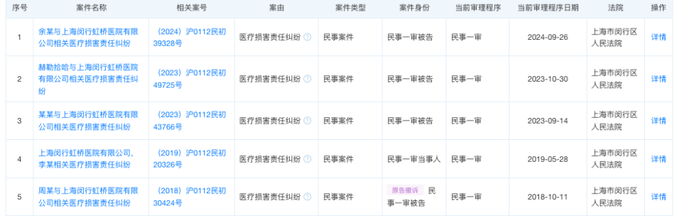 红星资本局注意到,美迪亚集团旗下医院曾数次因医疗损害责任纠纷被起诉。例如昆山虹桥医院有3起、无锡虹桥医院有1起、深圳港龙医院有1起、杭州天目山医院有4起、上海闵行虹桥医院有5起等等。
