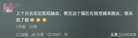 评论区不少网友表示诧异,还有网友表示,“上个月去安定医院抽血,看见这只猫在化验室跳来跳去。”