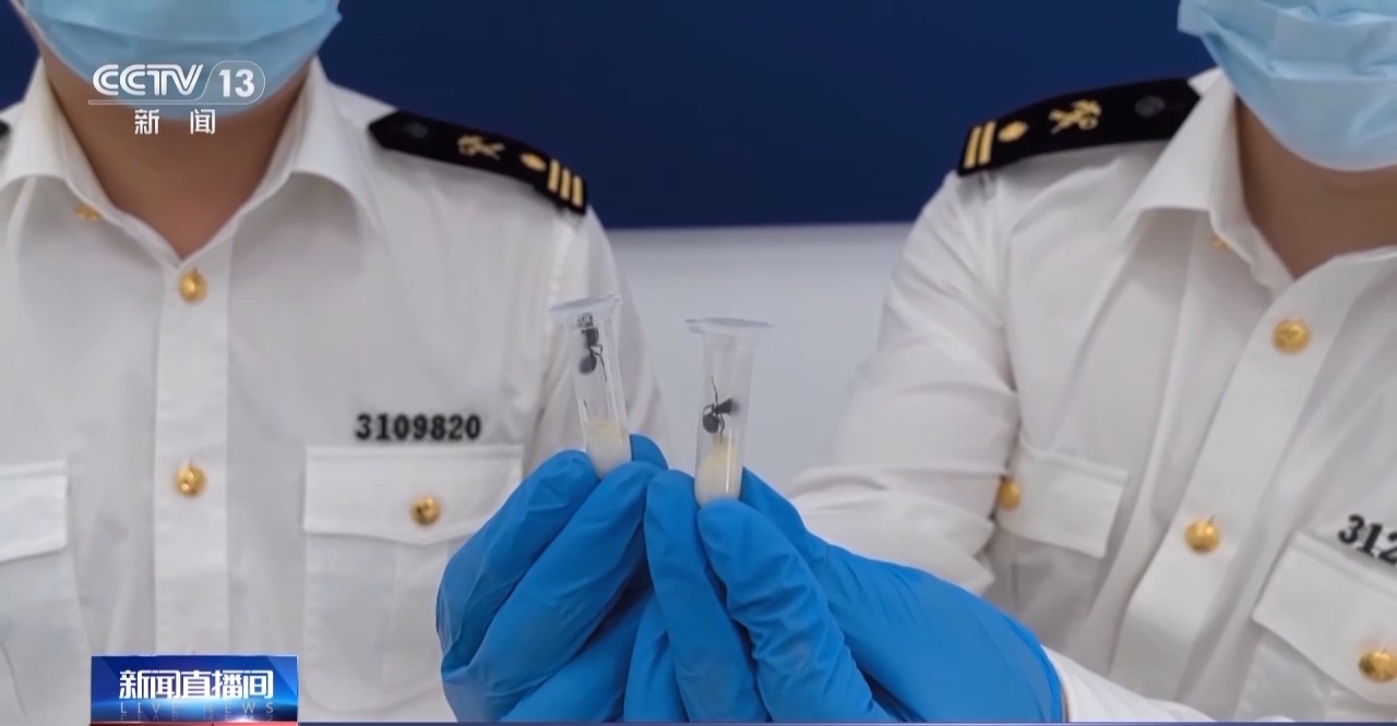 日前,上海浦东机场海关在对一架次入境航班监管时,在一名旅客的包装袋内共捕获疑似蚂蚁、鼠妇等各类活体昆虫49只。2023年,上海海关累计截获有害生物8.2万种次。