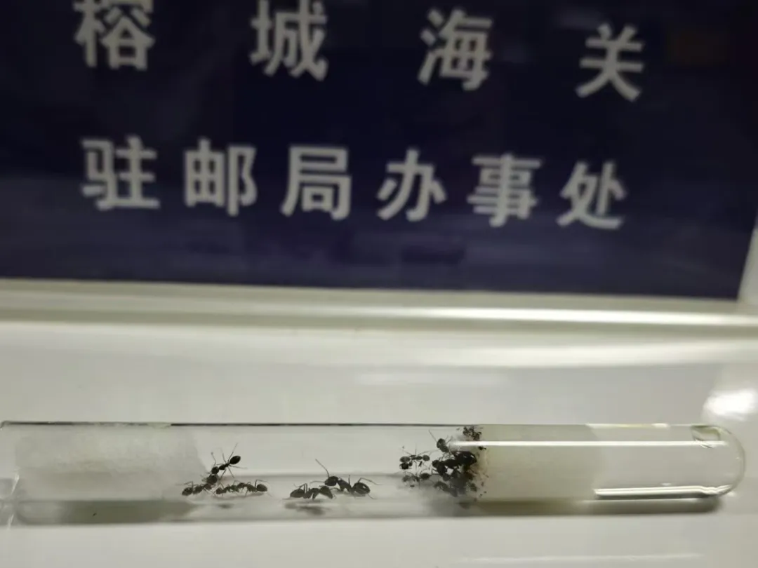 无独有偶,2023年10月,宁波邮局海关在3个异常邮件中发现,夹藏的塑料指形管装有3117只野蛮收获蚁。