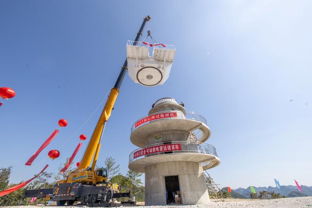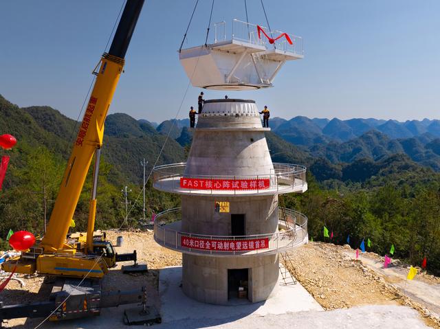 9月25日是“中国天眼”落成启用8周年纪念日。在距离“中国天眼”不到3公里的一处山头上,一台40米级的射电望远镜开始吊装,“中国天眼”核心阵试验样机正式开工建设。