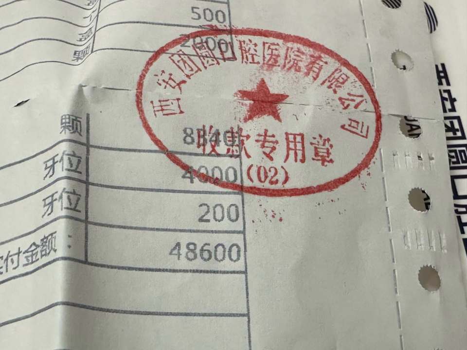 芦女士提供的西安新城团圆口腔医院收费单显示,12颗雅定种植体等费用共48600元。