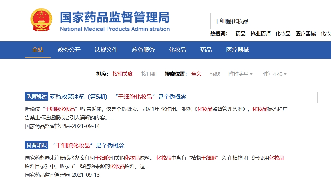 事实上,将“干细胞”涂在皮肤上并期待能够抗衰,是纯纯的“智商税”。2021年,国家药品监督管理局即发布科普文章,称“干细胞化妆品”是个伪概念。