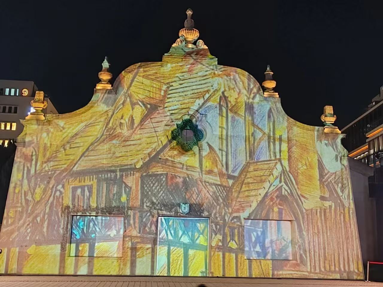 在上生·新所上演的《光影奇遇》是为长宁量身定做的一款光影秀,以海军俱乐部的外墙为背景,分三幕故事讲述了匈牙利建筑师邬达克和长宁的不解之缘。通过20幅手绘作品,这款光影秀细致地呈现了邬达克在长宁的所有建筑,让观众可以领略其过去、现在和未来。