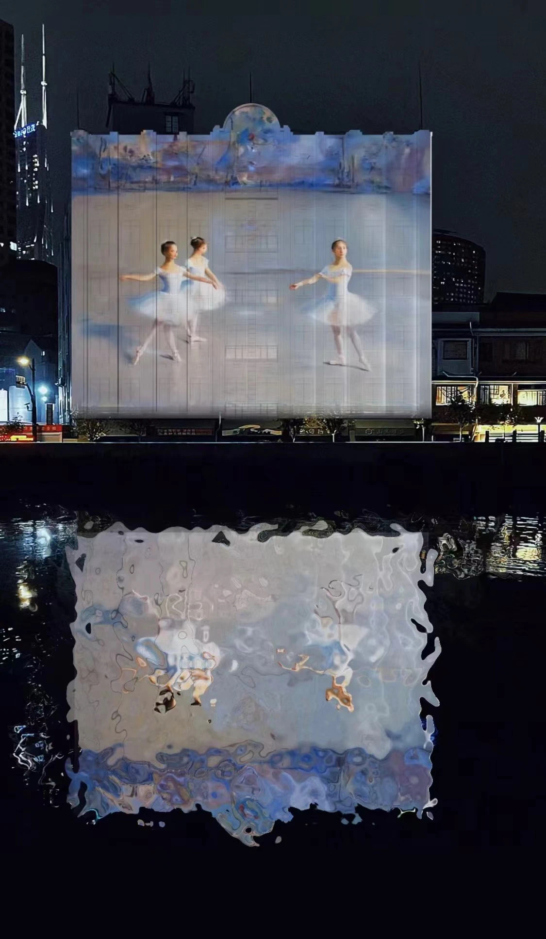 浙江路桥附近,诸多世界名画投影在苏州河畔的建筑外立面,“动”了起来。上海静安 图