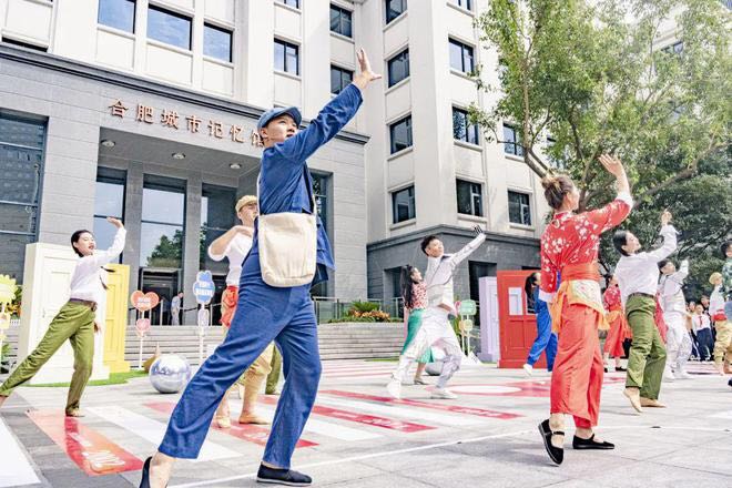 “我们如此热爱合肥”穿越门歌舞快闪 (庐阳文旅集团供图)。