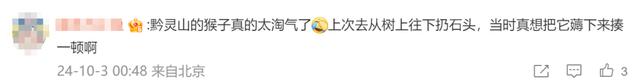 就在同日,贵州黔灵山一女子爬山时也遭猴子抢包。该女子无奈在树下“喊话”猴子,猴子在树上把包内物品一样样扔下来。