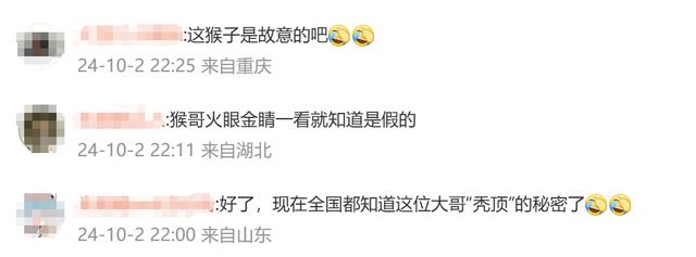 10月1日,贵州黔灵山景区,猴子把一男子头上的假发摘了。拍摄者称,猴子突然蹿到男子头上,后来这位男子没有再上山。