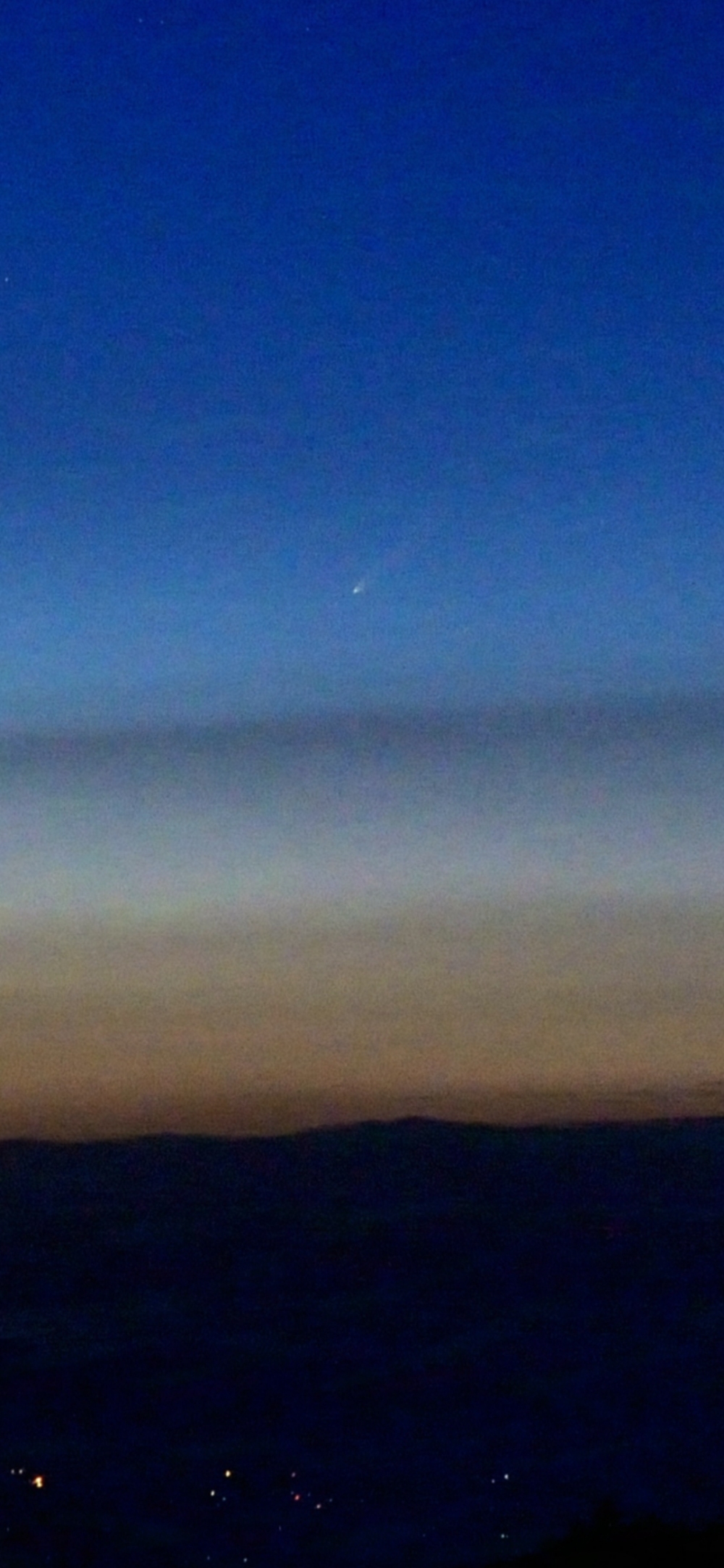 拍摄需使用稳定的三脚架固定相机或手机,采用手动对焦模式,对尽可能远的参照物进行对焦,根据天空背景亮度和彗星亮度手动设置曝光时间,单张曝光建议4秒以上,感光度ISO控制在噪点允许范围。