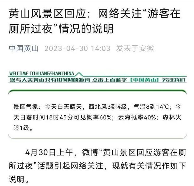 去年4月30日,黄山风景区管委会曾发布“游客厕所过夜”情况说明。网络图