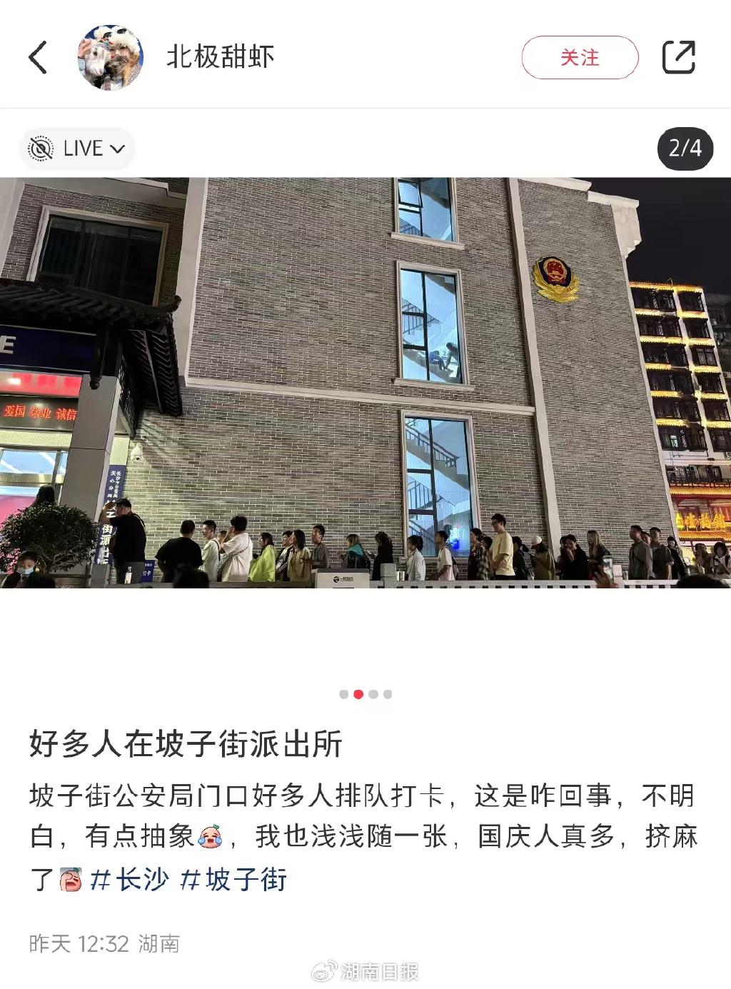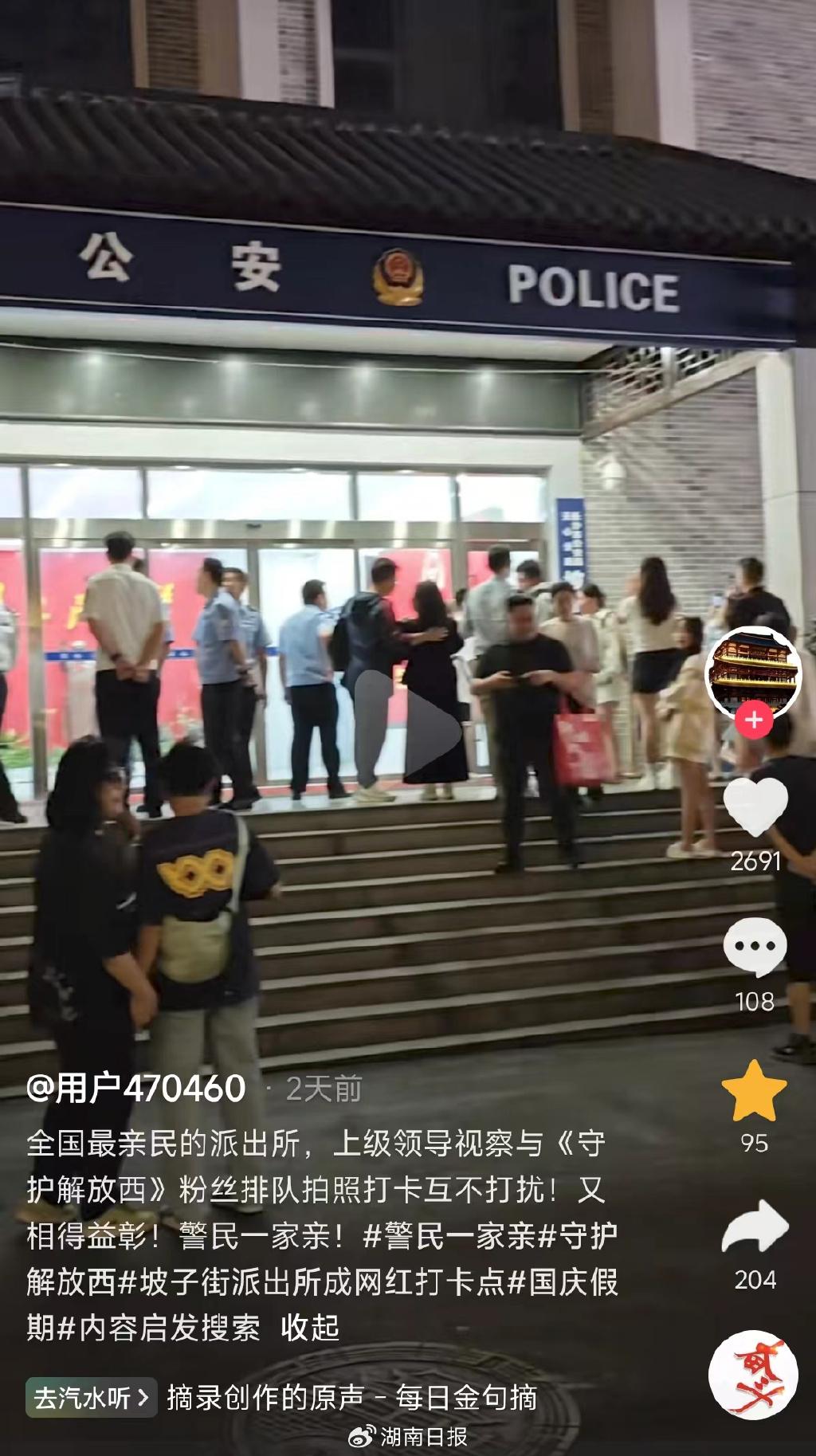 今年的国庆假期,长沙的坡子街派出所再次成为热门打卡点,人流量赶超一片5A级景区。很多来长沙的游客专程来这里打卡,派出所门口甚至排起了长长的队伍。
