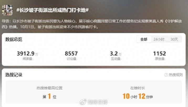 坡子街派出所走红,归根于一部叫《守护解放西》的纪录片。《守护解放西》目前已经播到了第五季,热度居高不下。今年国庆节期间,《守护解放西5》还和坡子街派出所携手,开展国庆文明打卡活动,现场打卡分享可以领取周边,更让游客们热情高涨。