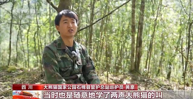 大熊猫国家公园石棉县管护总站巡护员黄豪:当时也是随意地学了两声大熊猫的叫,刚好对面也有回应,我们当时还以为是自己产生了幻觉,以为是回音。