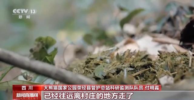 大熊猫国家公园荥经县管护总站科研监测负责人 付明霞:熊猫跑到这儿的话,已经往远村庄的地方走了,它吃的都很正常,应该就是下山调皮捣蛋了一圈又上来了。