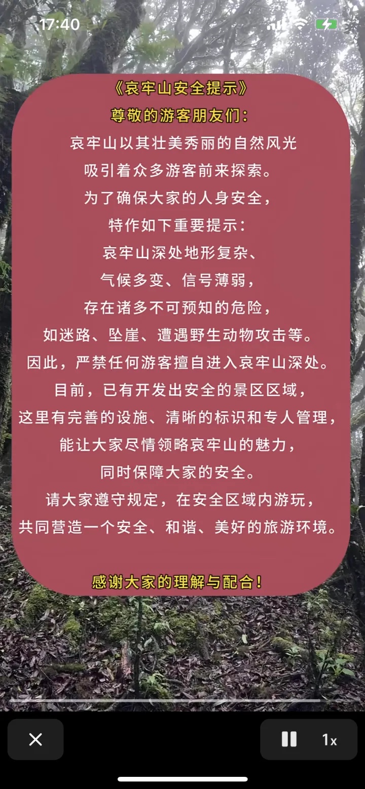 哀牢山景区发布安全警示
