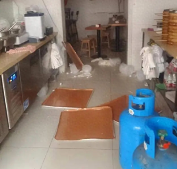 近日,辽宁省大连市沙河口区一包子店凌晨突发爆燃,店内一片狼藉。