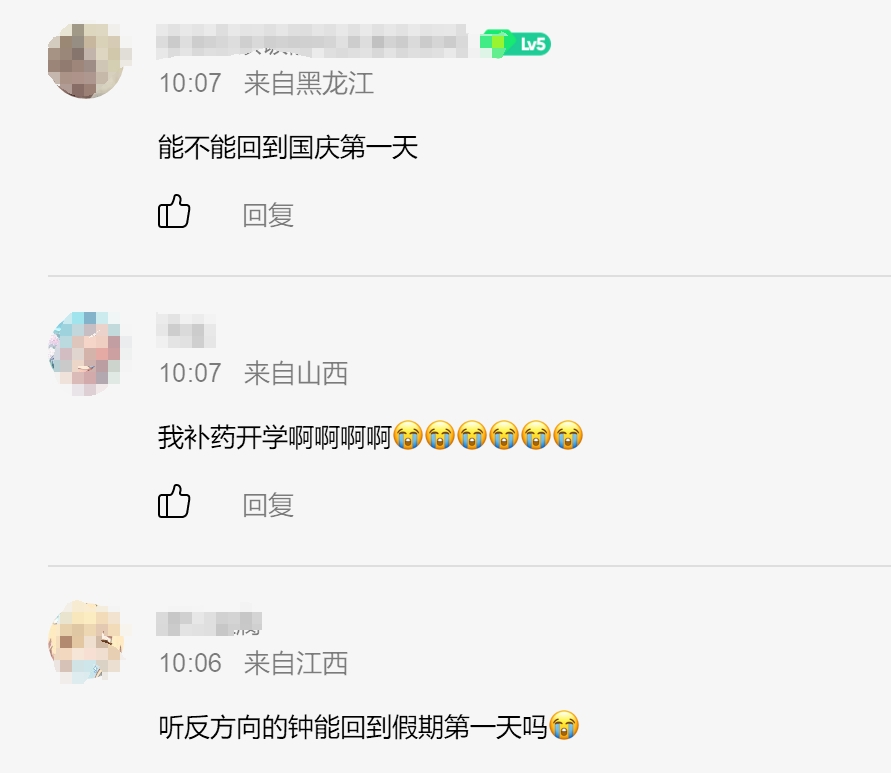 这首出自周杰伦的歌曲《反方向的钟》成为了网友们告别假期的最新单曲,打开歌曲评论区,能看到来自全国各地的“发疯”网友在企图“时光倒流”。