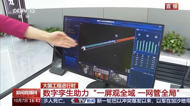 我们挑几个细节来看一下,这个屏幕上我们看到现在工程进度是857.1米,物料使用量是什么情况,以及安全风险提示有哪些;在这个屏幕上可以看到3号隧洞施工的实时监控画面,而在数字孪生系统里,阳光隧道里闪烁的红色光点,就代表着正在隧道内工作的工人,能精准追踪到每个工人的位置和状态。而再看这个系统,全线25条施工支洞每条支洞的情况点进去也都可以看到细节。