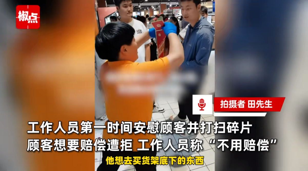 “那个人很愧疚,工作人员还安慰他没事的没事的。”顾客田先生接受采访说道。