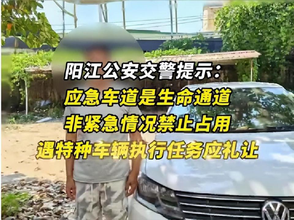 视频结尾,“阳江公安交警”提醒广大车主:应急车道是生命通道,非紧急情况禁止占用,遇特种车辆执行任务应礼让。