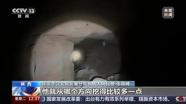 延安市公安局安塞分局刑侦大队民警 张锦峰:里边它是错综复杂的,就是左边一个、右边一个,哪里感觉“龙骨”可能多一点,他就从哪个方向挖得比较多一点。