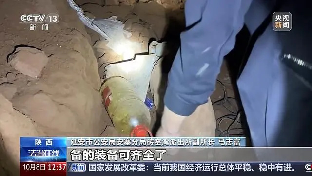 延安市公安局安塞分局砖窑湾派出所副所长 马志富:这么粗的那种电缆线,从洞口到里面全部通着,里边供氧照明,就像家一样。发电机,备的装备可齐全了,就像一个人在长期生活一样。