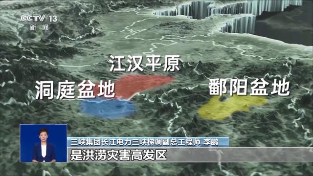 三峡集团长江电力三峡梯调副总工程师 李鹏:这一片区域,江汉平原、洞庭湖区和鄱阳湖区是洪涝灾害高发区。地势低洼,暴雨集中、河道曲折,每到汛期上游传来的洪水、本地降下的暴雨、下游顶托的水流,三者合力迅速推高干流与支流的水位。