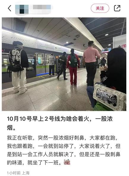 今(10月10日)早,有网友发帖称在乘坐上海地铁2号线时遇到突发状况。