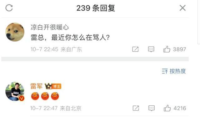 “雷总,最近你怎么在骂人?”在雷军的微博评论区,有粉丝提问。