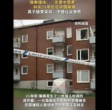 “涉嫌杀瑞典妻子的中国男子”21年后在华被捕事件持续受到关注。据环球网、中国新闻网等媒体援引瑞典媒体报道,21年前,瑞典发生一起谋杀案,一名瑞典女子和她的邻居被杀,犯罪嫌疑人是该女子的中国丈夫林友。21年后,据瑞典媒体近日报道,林友目前因涉嫌谋杀罪在中国被逮捕。