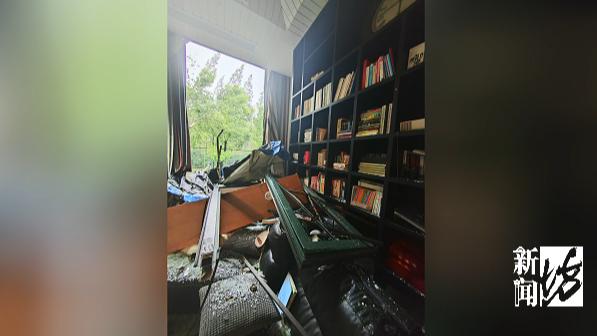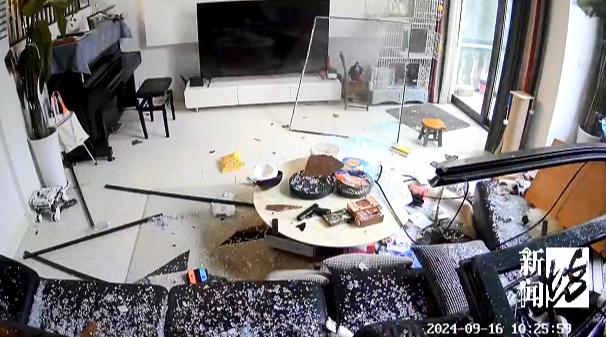 周先生家2层客厅的监控画面显示,9月16日上午10点25分左右,正是台风“贝碧嘉”对上海风雨影响最大的时候,周先生家客厅南向的落地窗框及玻璃,突然被不明外来物猛烈冲击,导致屋内一片狼藉。大风裹挟着雨水,瞬间打湿了整套房屋。