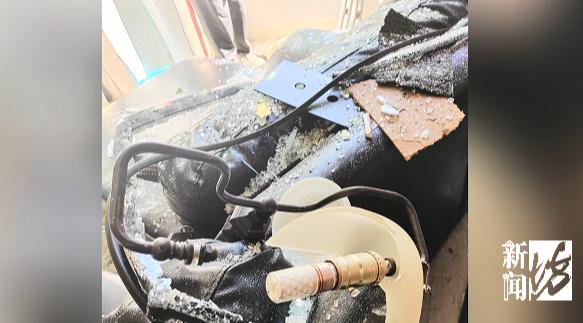 9月16日,台风“贝碧佳”登陆申城,将他家附近一处闲置工地上的铝制彩钢板吹飞,并重重砸向他家客厅,导致其家中墙体、玻璃、家具及车辆都出现了不同程度的受损情况。