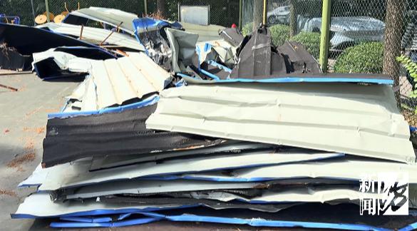 待当天台风过境后,周先生与小区物业经理一起找到了这片“天外来物”的出处,正是其家南侧一座三层废旧厂房的屋顶彩钢瓦片。