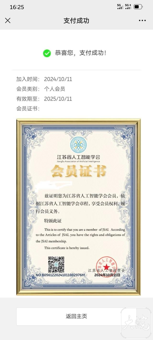 同在10月11日,大皖新闻记者也就赵子健公开展示的社会职务进行了体验尝试。报道称,记者申请了其简历中提到的江苏省人工智能学会会员,通过登记简单的信息后成功注册了会员账号,此时,记者已成为该学会的未认证会员。记者继续申请认证,跳出的页面显示可申请团体会员或个人会员,记者点击申请个人会员后立刻跳入缴费页面,其显示会员年费每年100元。记者缴纳100元后,很快就成为其会员。