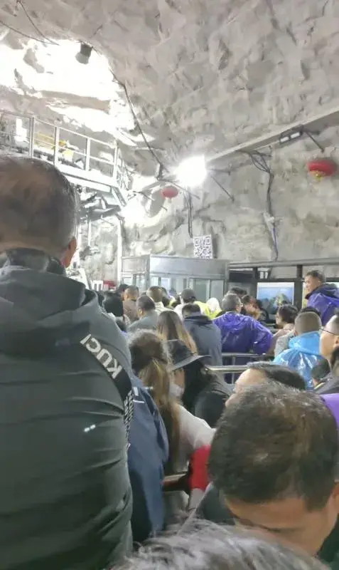 “下雨大风坚持爬山爬了5小时,准备坐索道下山,结果排了1小时后被通知停运。”