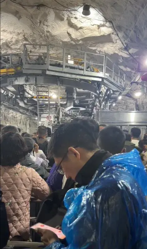10月12日下午,多位游客和网友反映,陕西华山西峰索道停运,困住上百游客,风雨之中下不了山。