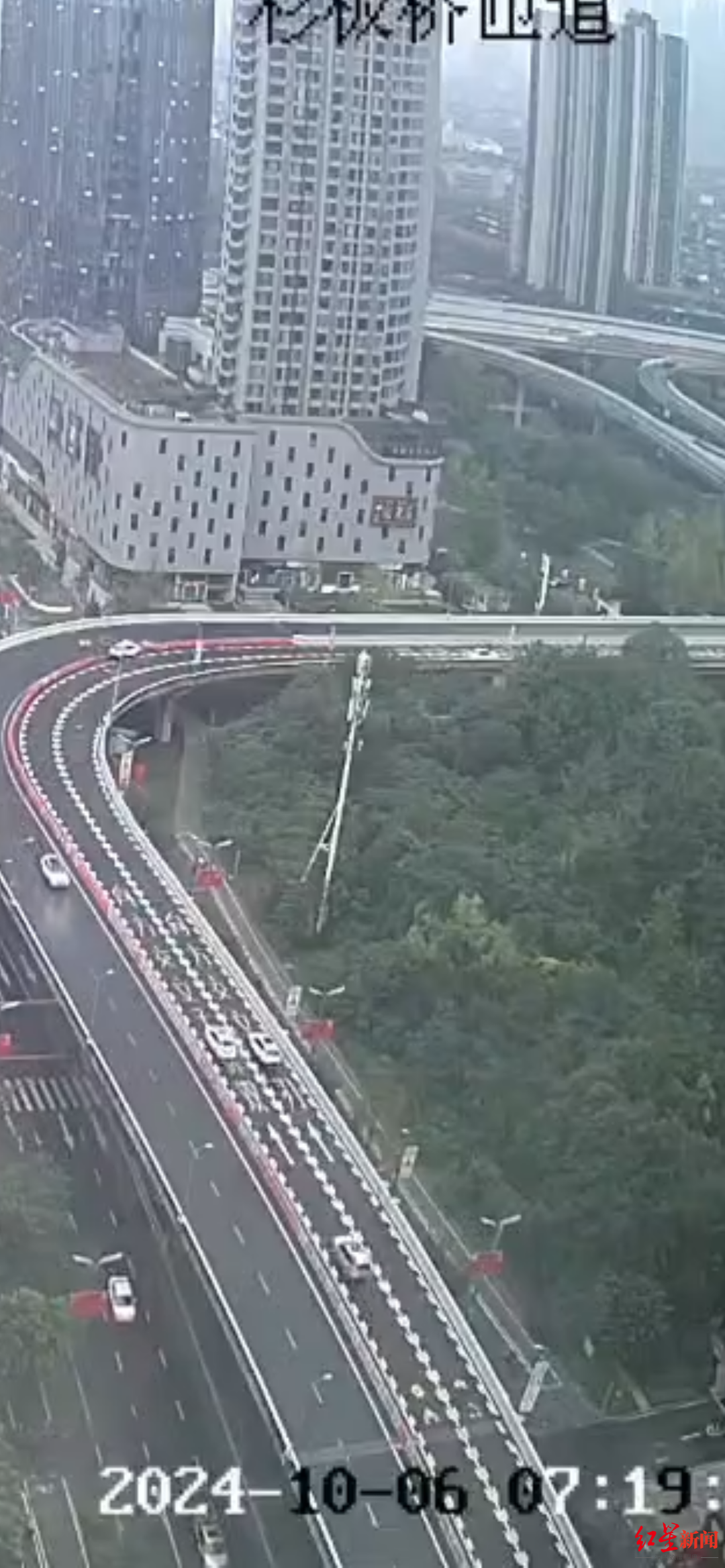 最近的一次视频是在今年10月6日,视频中24小时内发生了三起事故:当天7点19分,上行匝道一辆白色车辆打滑,撞上水马;8点53分,下行匝道一辆白车在弯道滑行随后与黑车相撞;深夜,下行匝道一辆白色车辆打滑,撞上水马。