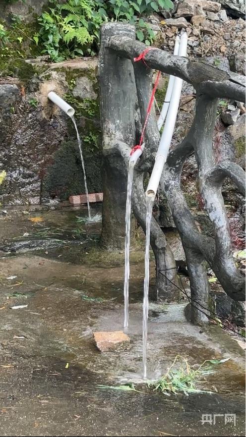 根据梧桐山巡逻保安的指引,记者从入口台阶处往山上步行20分钟左右进入盘山公路,再沿公路步行约1小时,到达其中一处山泉水取水点。这里的山泉水由3根白色水管从山壁中引出,肉眼看起来水流比较清澈。