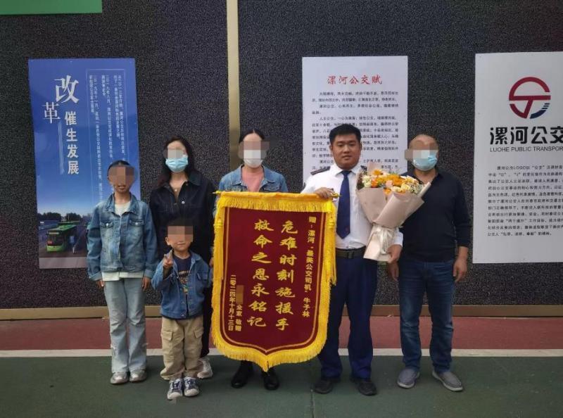 10月13日上午,孩子母亲孟女士带着家人一起,拿着锦旗和花束再次来到营运一公司,当面对牛子琳说了谢谢,感谢他能在危急时刻出手相救。