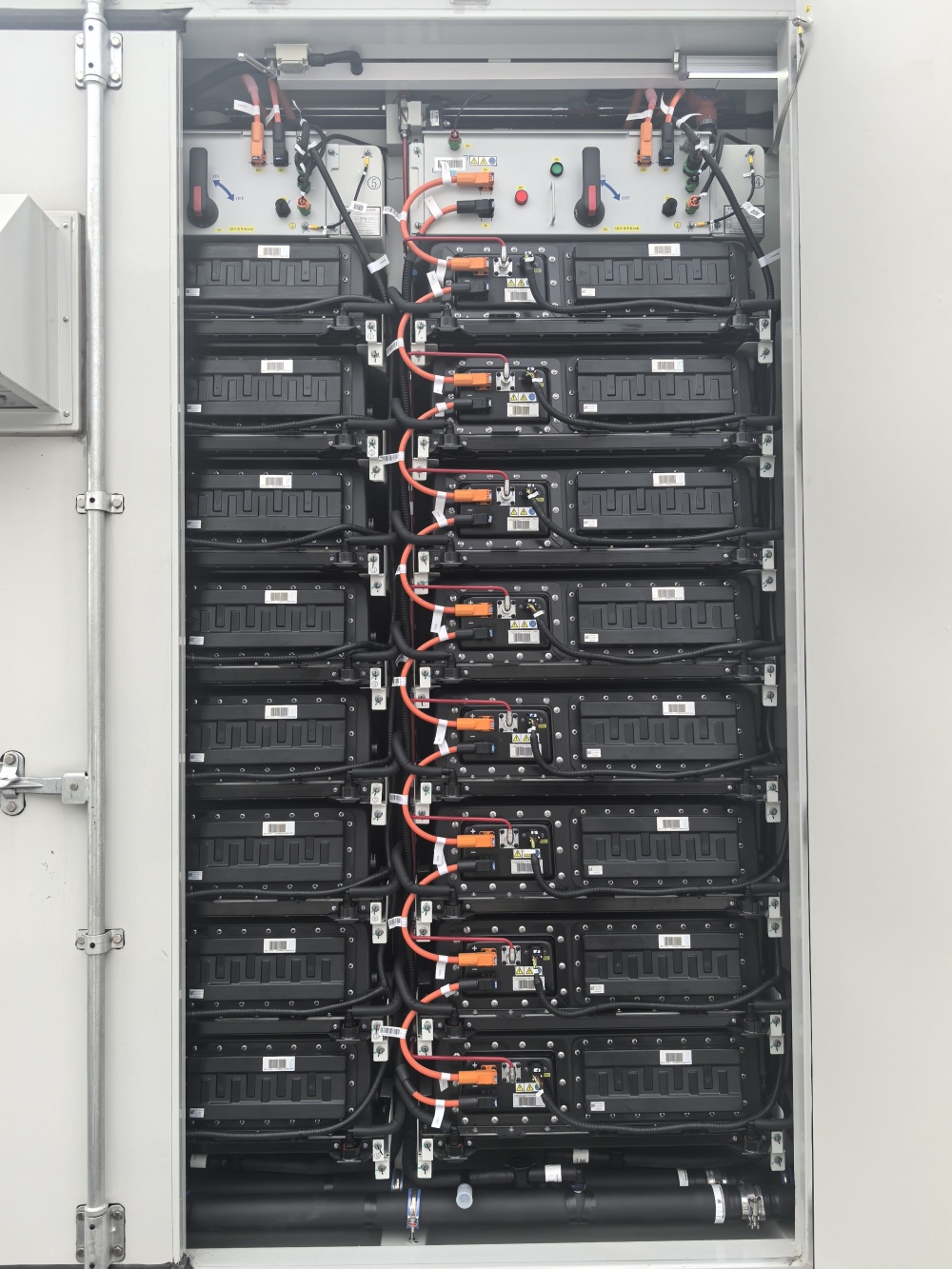 在潞城仁和储能电站园区内有20个电化学储能单位,好似一个个由电池组成的“车厢”。打开“电池车厢”舱门,记者发现,这个庞然大物是由多个小块的磷酸铁锂电瓶组成的。每个储能单位由2个小仓组成,每个仓内有24簇电池包,每簇电池包内有8块电池,这些电池的寿命约在8-10年。