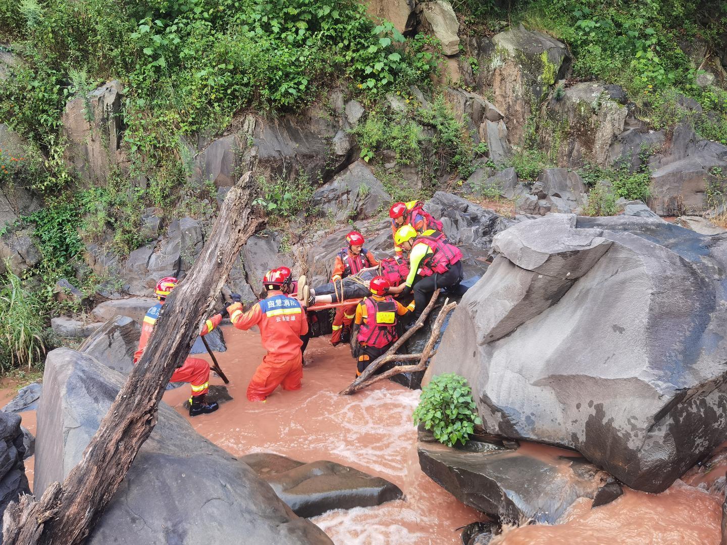 红星新闻记者从楚雄州消防救援部门获悉,14日下午3时59分,禄丰市消防救援大队接到该男子家属报警后立即前往处置;4时30分,消防救援人员到达现场后发现,被困男子坐在河道对岸的一块巨石上。