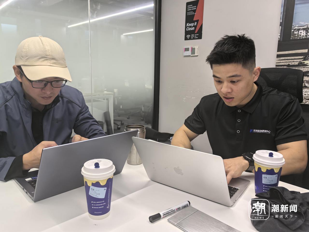 黄凤翔、傅一昕正在赶制课件。记者 陈颖 摄