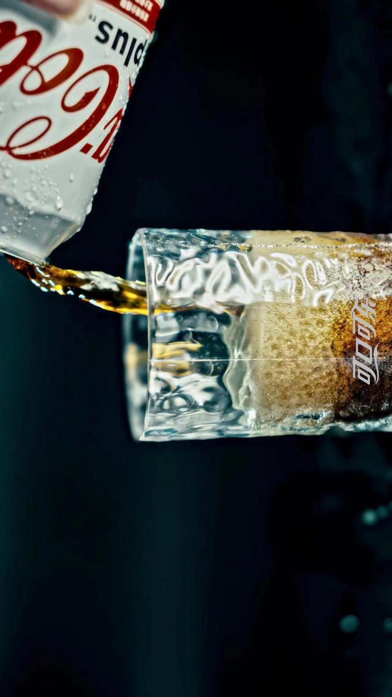 他先是手持喷雾器,在镜头前巧妙地营造出朦胧的雾气效果,令画面更加生动;当他试图拍摄可乐旋转的镜头时,既要控制喷雾的力度,又要避免手入镜。经过十几次尝试,终于捕捉到了令人满意的瞬间。