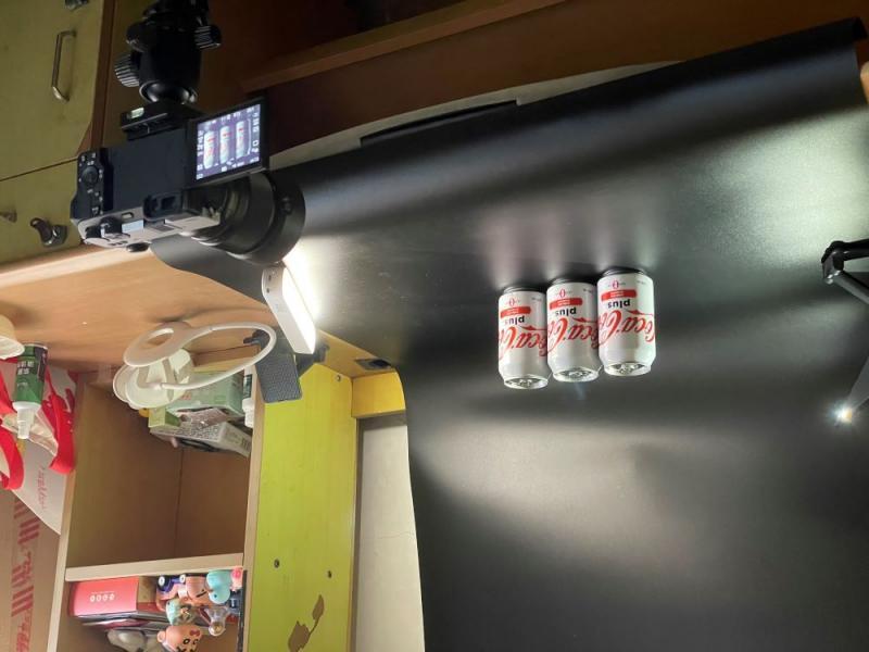 尽管宿舍的灯光条件有限,但阿航还是用几盏宿舍的台灯,加上平板电脑的手电筒辅助,照亮了整个拍摄空间。