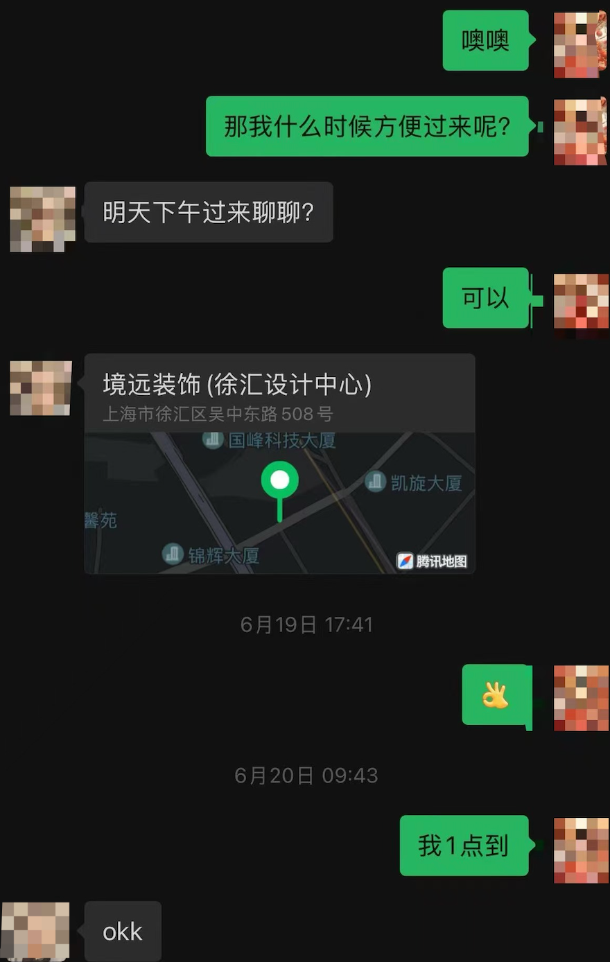 记者随即将这一线索告知吴店长,吴店长立刻表示“我们没有任何他的工地”,后记者将带有“境远装饰”四字的现场照片发送给吴店长,表示只是告知朱先生动向,吴店长随即称立刻派人前往。