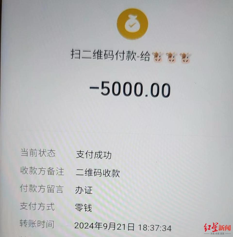 为印证自己“生意”火爆,钟女士向记者展示了一张“顾客”支付定金的转账截图。记者注意到,该转账信息发生在9月21日,转账留言标注为“办证”。
