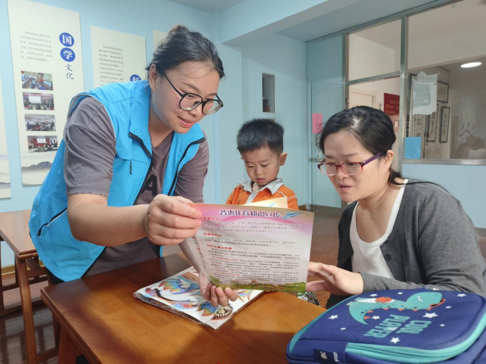 活动中,计生协会志愿者通过发放宣传单等形式大力宣传《中华人民共和国人口与计划生育法》、解答居民们关心的托育政策、育儿知识等问题,帮助家长了解托育、信任托育,解决家长的育儿后顾之忧,进一步提升家庭的婴幼儿照护能力。