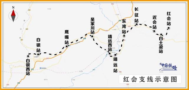 在包兰铁路白银西站向东,有一条始建于1958年的红会支线,西起甘肃省白银市白银区,东至甘肃省白银市平川区,全长120公里。